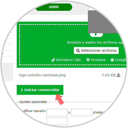 Ahora crearemos un archivo .ico de forma gratuita y online con alguna de las páginas que encontramos en Internet. En este caso hemos elegido Image Online converter. Para ello sube la imagen que quieres transformar en icono y un tamaño. Pulsa en Iniciar Conversión.