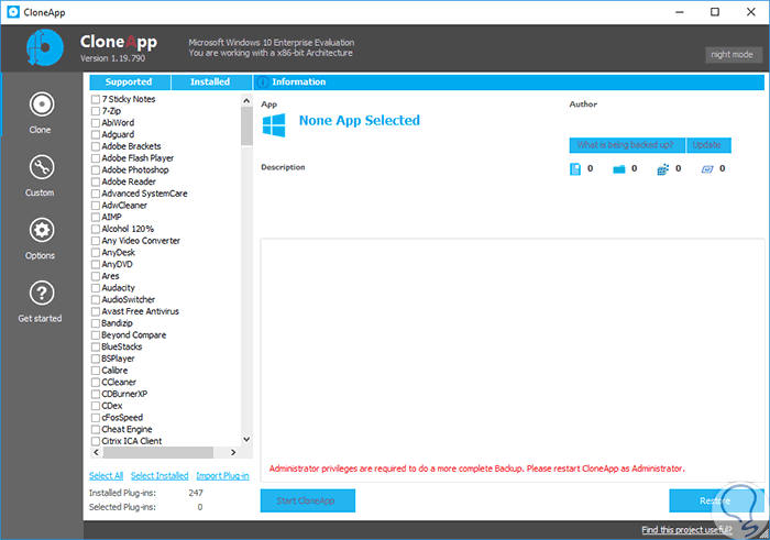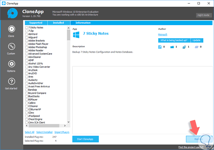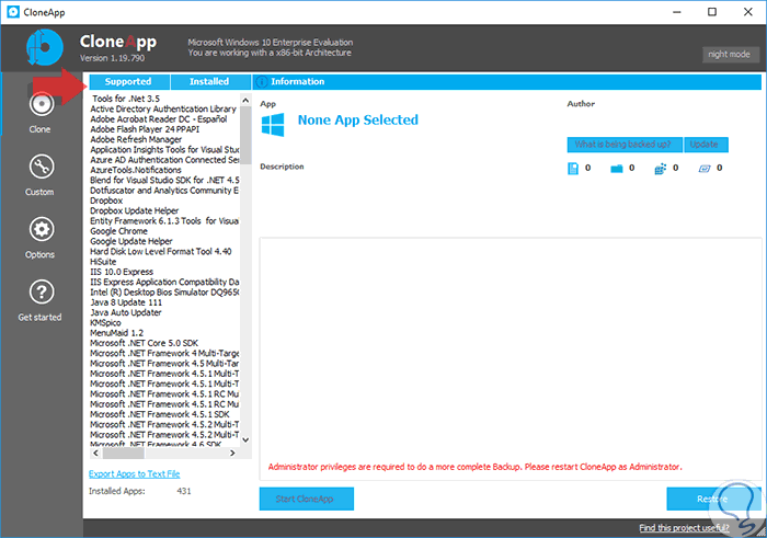 Este listado nos sirve para tener una referencia acerca de que programas tenemos instalados ya que en ocasiones tenemos tantos que no los recordamos todos. Para clonar una aplicación o programa vamos nuevamente a la pestaña Supported y debemos activar las casillas de los respectivos programas.