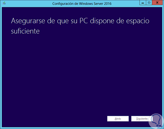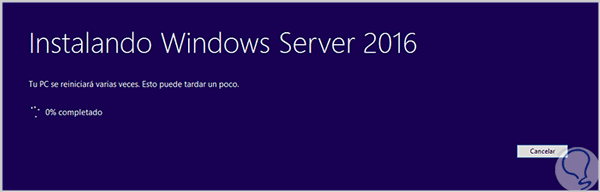 El equipo se reiniciará en varias ocasiones para establecer la respectiva configuración. Una vez el equipo sea reiniciado podemos ver que inicia el proceso de actualización a Windows Server 2016: