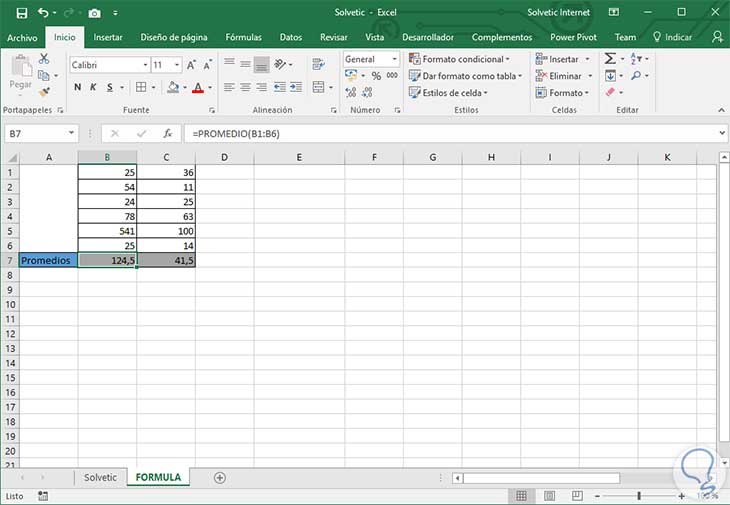 Hemos usado la fórmula PROMEDIO para obtener el promedio de los rangos de datos seleccionados.