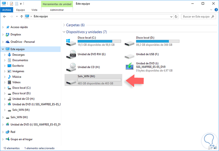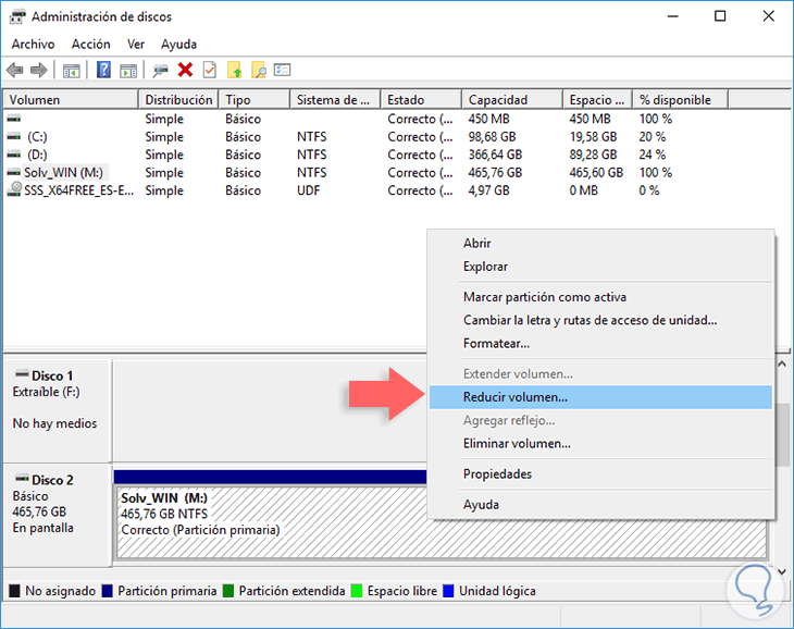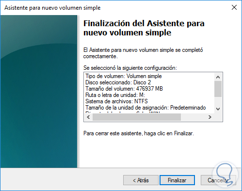 Hemos creado hasta este punto la partición Solv_WIN la cual estará disponible para el respaldo de Windows 10.