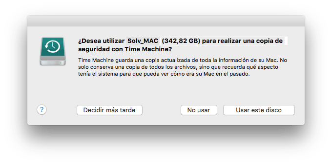 Pulsamos en el botón Borrar para iniciar el proceso de formato. Es posible que durante el proceso de formateo el sistema nos indique si deseamos usar dicha partición como respaldo en Time Machine: