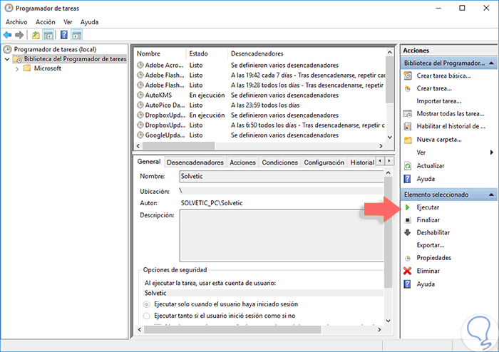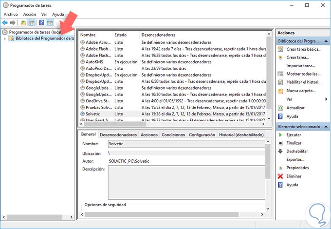Con el programador de tareas tendremos siempre una biblioteca de todas las tareas que han sido programadas permitiéndonos tener una vista organizada de cada una de ellas para tener un control centralizado sobre las acciones a realizar en Windows 10.