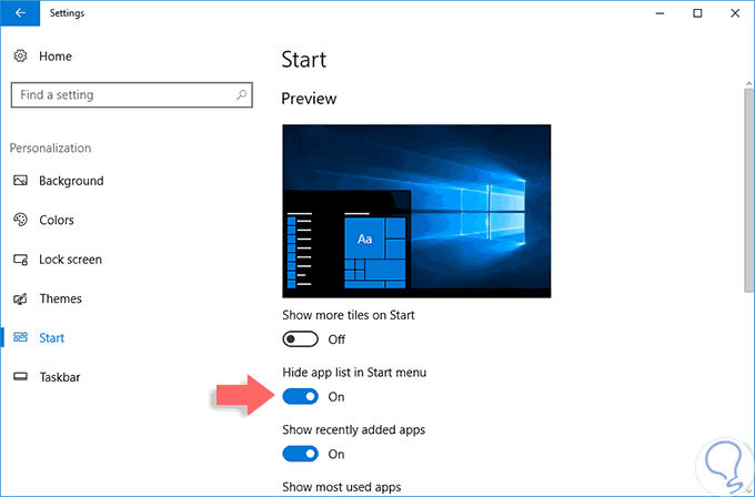 Cómo ocultar la lista de aplicaciones Menú Inicio en Windows 10 Creators Update
