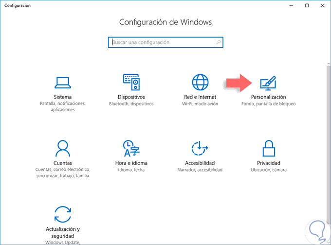 Para hacer efectiva esta tarea vamos al menú Inicio y allí seleccionamos el menú Configuración. Se desplegará la siguiente ventana: