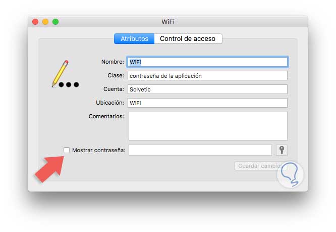 Podemos ver en detalle la configuración de la red WiFi y para ver la contraseña de dicha red activamos la casilla Mostrar contraseña y será necesario ingresar la contraseña de administrador: