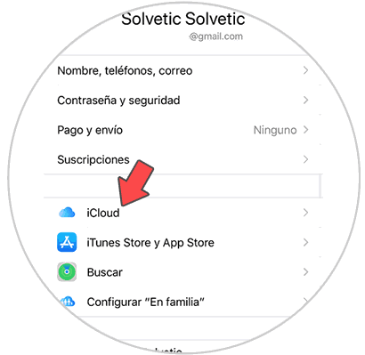 Ahora entra entre todas las opciones disponibles, entra en "iCloud"