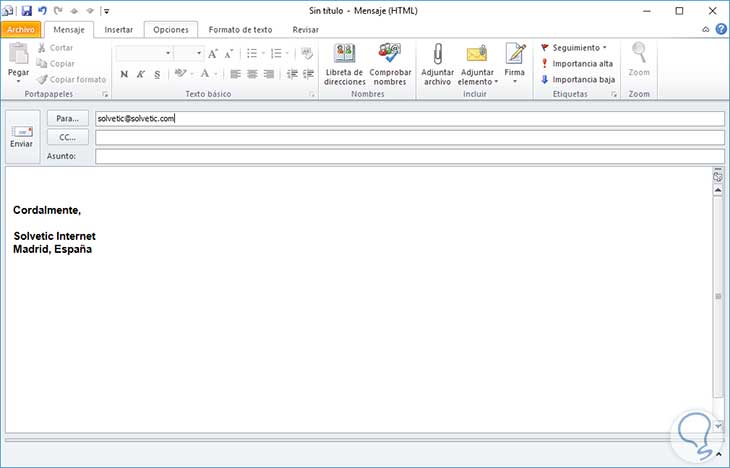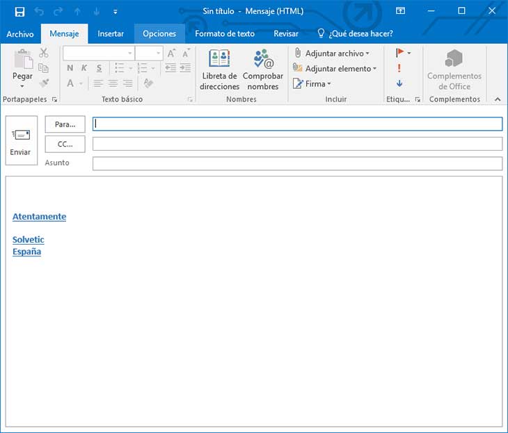 3. Crear y añadir firma Outlook 2016 Windows 10