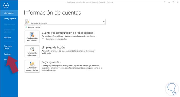 Para establecer la firma en Outlook 2016 vamos a ir al menú Archivo / Opciones