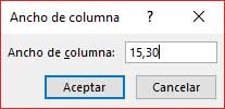 En la ventana desplegada definimos el ancho deseado a la columna. Pulsamos Aceptar para aplicar los cambios.