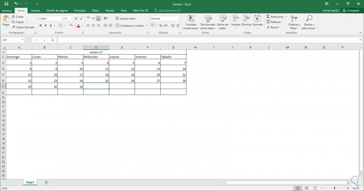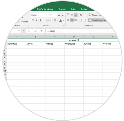 - Se ha dejado la primer fila en blanco para agregar posteriormente el título del calendario