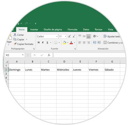 En primer lugar será necesario que incluyamos los nombres de los siete días de la semana en una fila definida, la hemos agregado en la fila 2:
