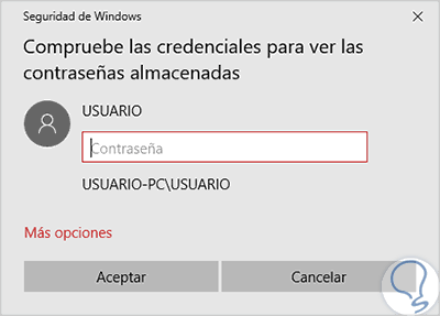 Como vemos tenemos la información completa de dicho acceso, la contraseña por seguridad está en formato de asteriscos, pero si pulsamos en la opción Mostrar la misma será reflejada pero antes será necesario ingresar las credenciales para ejecutar la acción.