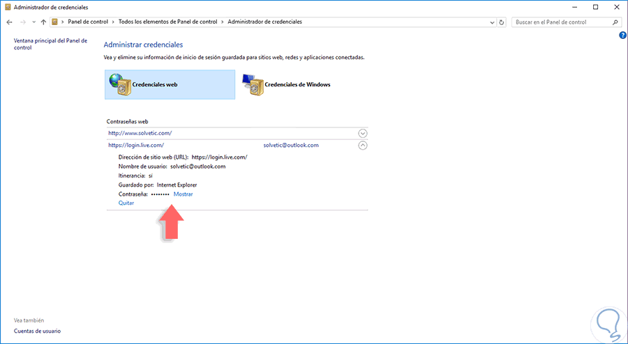 Una de las formas de seguridad más común que podemos implementar en Windows 10 es asignar contraseñas a los diferentes elementos que gestionamos con el fin de aumentar la privacidad y evitar accesos no deseados al sistema. El problema de esto radica en que a medida que ingresamos en diversos sitios web Windows 10 puede almacenar estas contraseñas, en segundo plano, en diversas ubicaciones del sistema lo cual hace que alguien con conocimiento tenga acceso a las mismas y pueda acceder a diversos programas o aplicaciones a las cuales solo tenemos acceso nosotros. Por eso es importante ver contraseñas guardadas Windows 10 de vez en cuando e intentar modificarlas para mejorar la seguridad siendo nosotros un gestor de contraseñas windows 10.