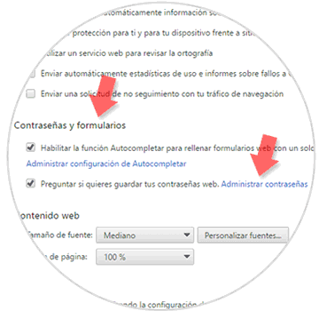 En la ventana desplegada seleccionamos la opción Mostrar configuración avanzada e iremos al campo Contraseñas y formularios.