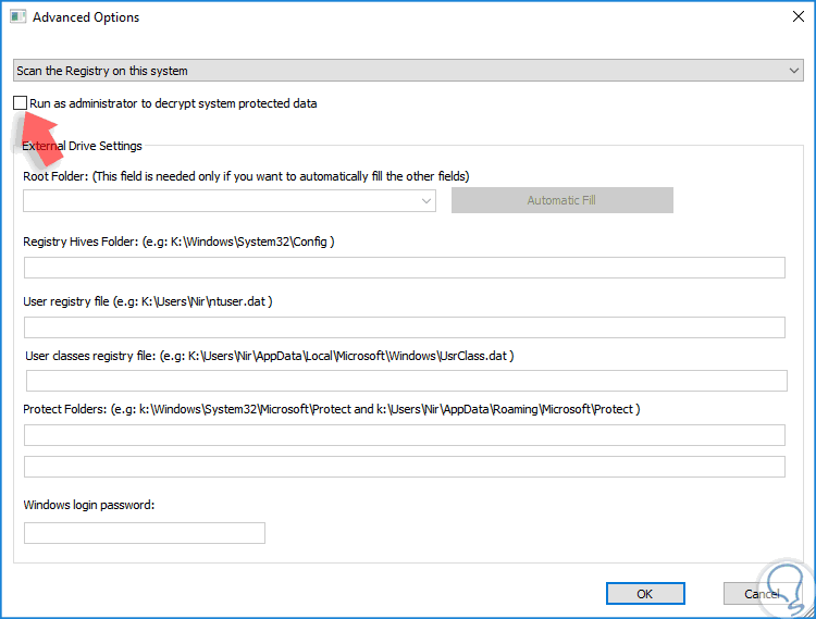Es una herramienta práctica ya que de una forma íntegra analiza los registros de Windows 10 y en caso de hallar alguna contraseña la desplegara para que tomemos acción sobre ella. Al momento de ejecutar la herramienta debemos activar la casilla Run as administrator para que la tarea sea ejecutada de forma correcta.