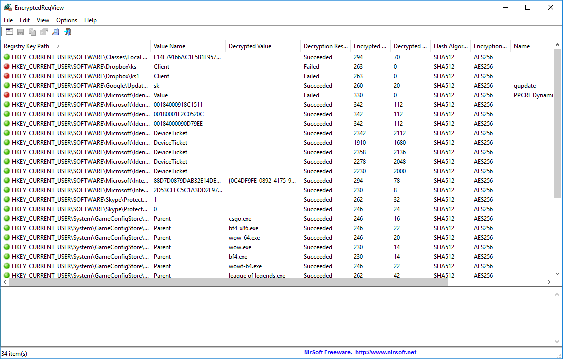 Una vez el proceso concluya tendremos los siguientes resultados. Allí será necesario ubicar las contraseñas en la columna Decrypted Value.