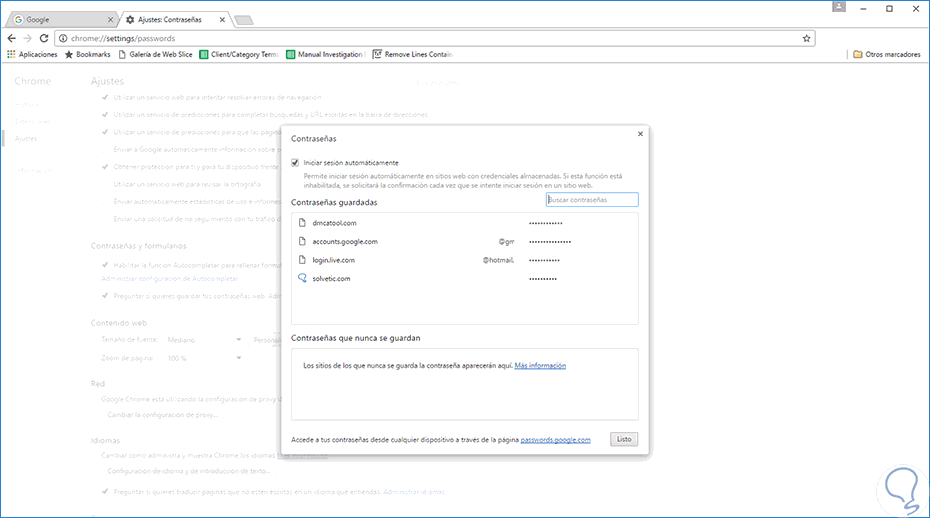 Como hemos visto el Administrador de credenciales de Windows 10 gestiona los usuarios y contraseñas de los navegadores propios de Microsoft, Internet Explorer y Microsoft Edge, pero para los demás navegadores tendremos que acceder a la configuración del mismo. Vamos a ver cómo ver contraseñas guardadas Chrome fácilmente.