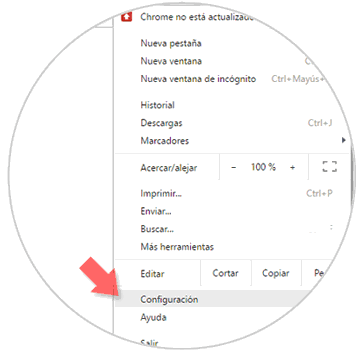 En Google Chrome debemos ir a la opción Configuración desde el menú superior derecho: