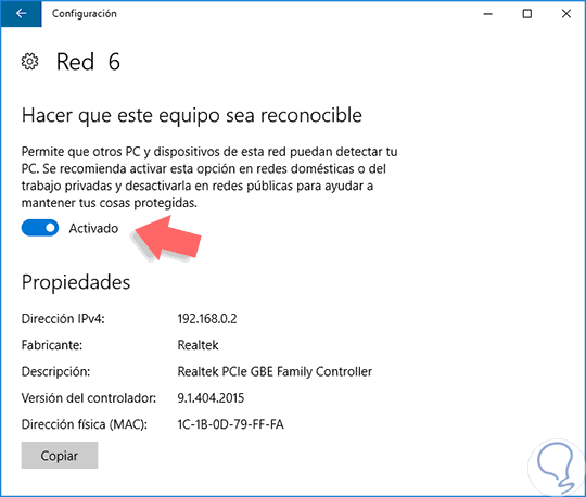 2. Cómo activar el reconocimiento del equipo en la red Windows 10