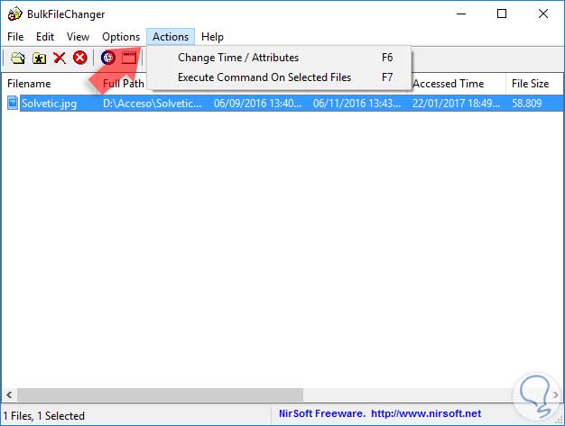 Para modificar las propiedades de dicho archivo basta con seleccionarlo e ir al menú Actions y seleccionar la tarea a realizar o bien usar la respectiva tecla asociada a cada acción: