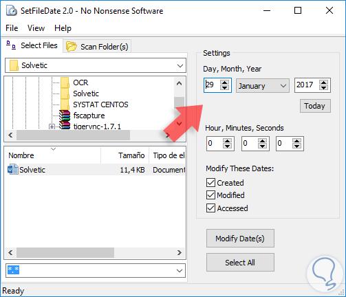 Con SetFile Date 2’0 el proceso es mucho más sencillo. Basta con seleccionar el archivo y desde el panel izquierdo efectuar los cambios en los atributos que sean necesarios: