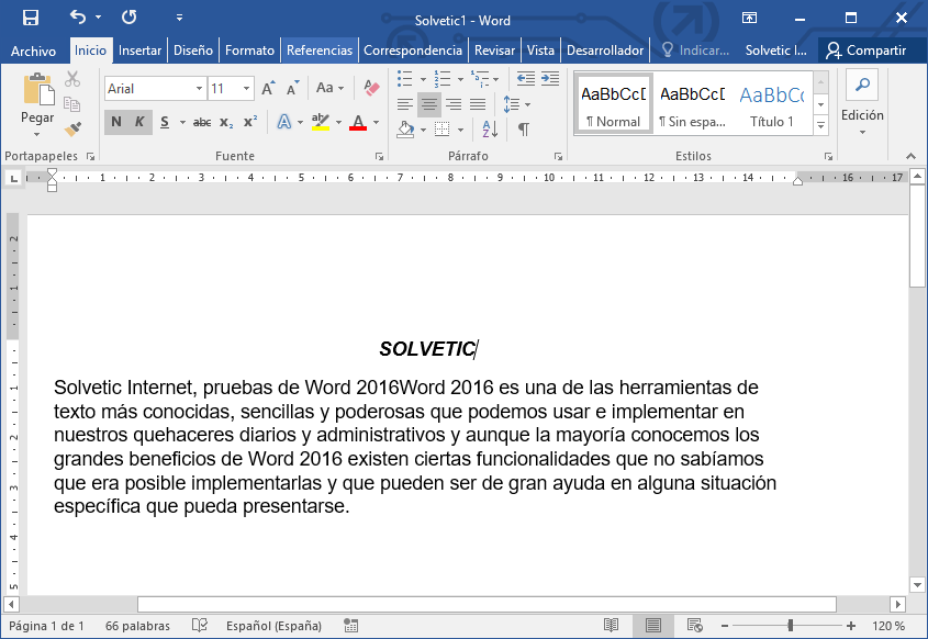 En primer lugar abrimos una nueva hoja de Word 2016 y escribimos un texto determinado. Ahora resaltaremos el texto que deseamos ocultar y haremos lo siguiente: