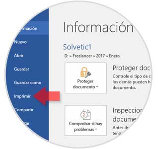 Para esto vamos a ir a la ficha “Archivo” y allí seleccionamos la opción “Imprimir”.