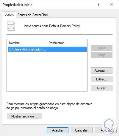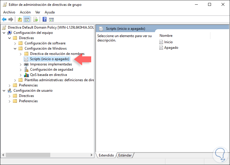 Configuración de equipo / Directivas / Configuración de Windows / Scripts (inicio o apagado)