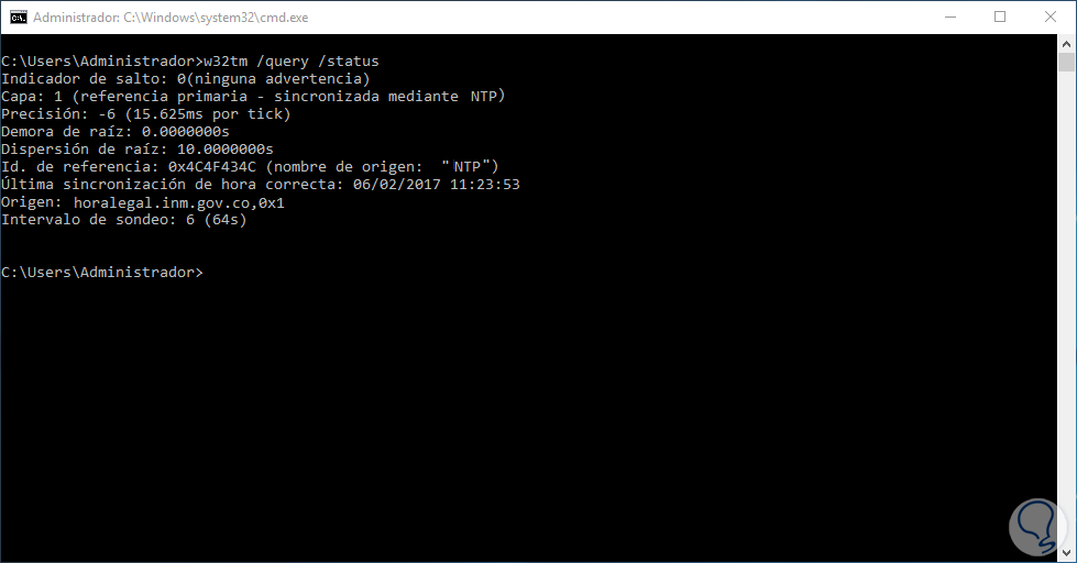 Para forzar la actualización de la hora podemos usar de nuevo este comando y veremos lo siguiente.