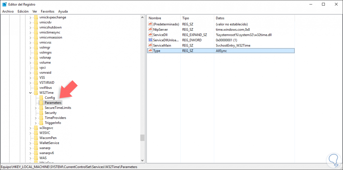 HKEY_LOCAL_MACHINE / System / CurrentControlSet / Services / W32Time