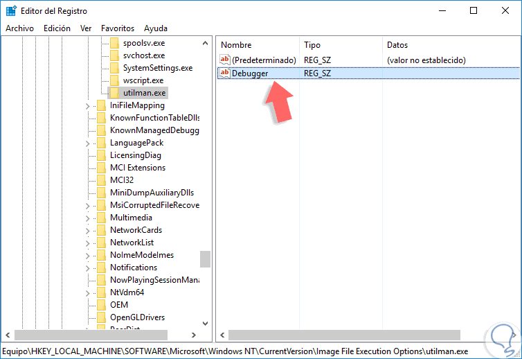 Allí daremos clic derecho sobre cualquier espacio en blanco del panel derecho y seleccionamos la opción Nuevo / Clave. El valor que daremos a la nueva clave era utilman.exe