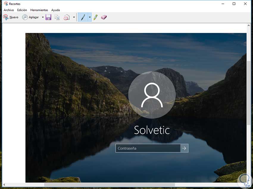 Podemos ver que se despliega de forma automática la herramienta Recortes y a partir de allí podremos tomar el pantallazo de nuestra pantalla de inicio de sesión de forma sencilla.