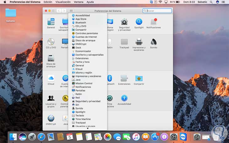 Para esto debemos mantener pulsado el icono en el Dock y de manera automática se desplegará una lista con todas las opciones disponibles en el panel de Preferencias del sistema y allí simplemente debemos elegir la que sea necesaria. Es una forma más ágil de acceder a la configuración de un elemento en macOS Sierra.