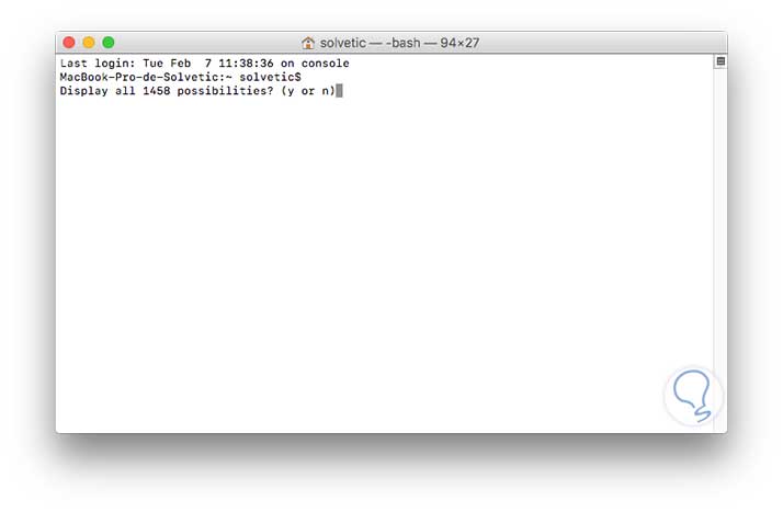 Allí ingresamos la letra y (yes) y se desplegara el listado completo de comandos en macOS Sierra. Para salir del listado de comandos y regresar a la línea de consola podemos usar la tecla Retroceso o la barra espaciadora.