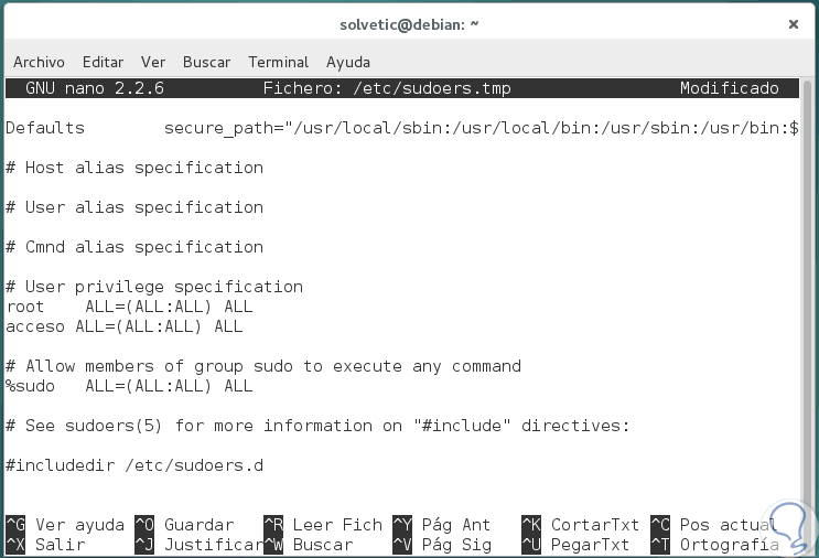 2. Cómo asignar privilegios Sudo a un usuario en Debian 8