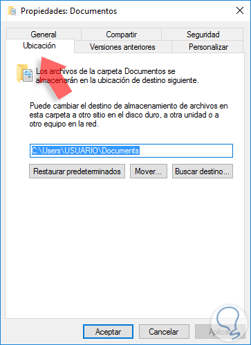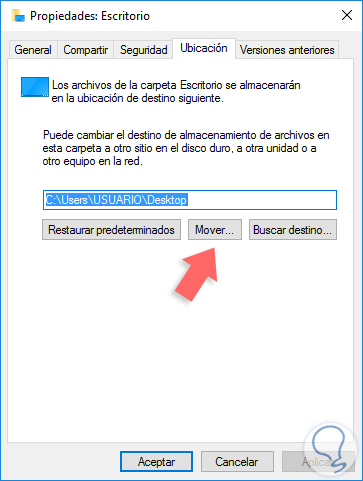 Allí seleccionamos la ficha Mover y nos desplazamos hasta la nueva carpeta creada asociada a la carpeta documentos: