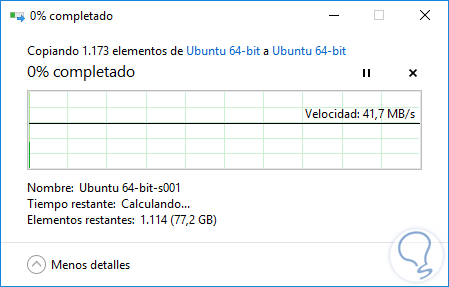 Pulsamos en la opción Si. De forma automática iniciara el proceso de copia a la nueva ubicación.