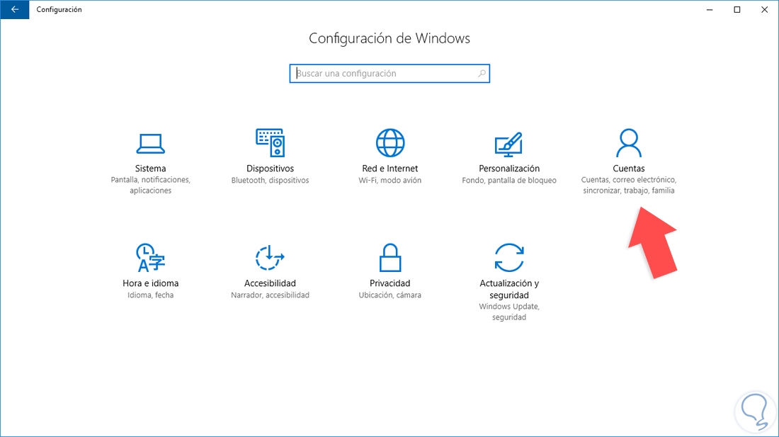 Para esto vamos al menú Inicio y seleccionamos la opción Configuración. Veremos lo siguiente: