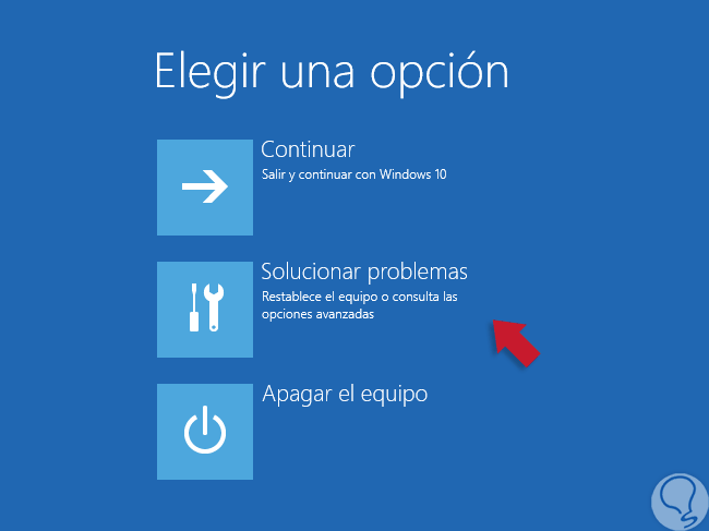 Seleccionamos la opción Solucionar problemas y veremos las siguientes opciones.