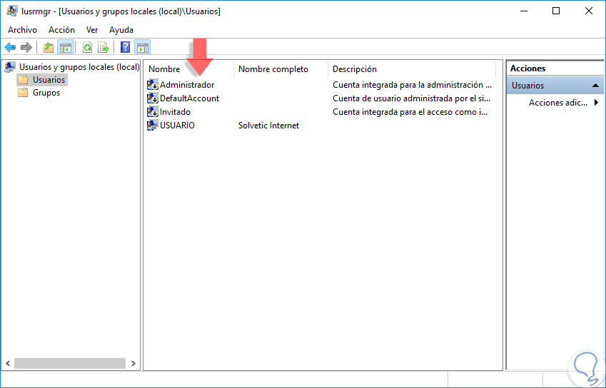 7. Activar administrador Windows 10 Grupos y usuarios locales