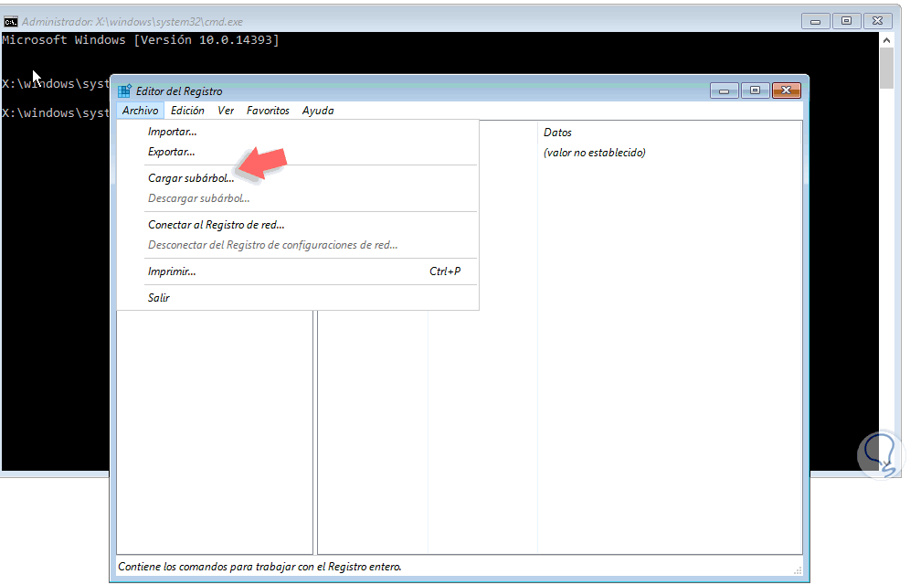 A continuación, vamos al menú Archivo y seleccionamos la opción Cargar subárbol.