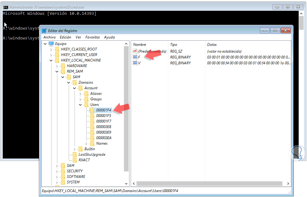 HKEY_LOCAL_MACHINE\REM_SAM\SAM\Domains\Accounts\Users\000001F4