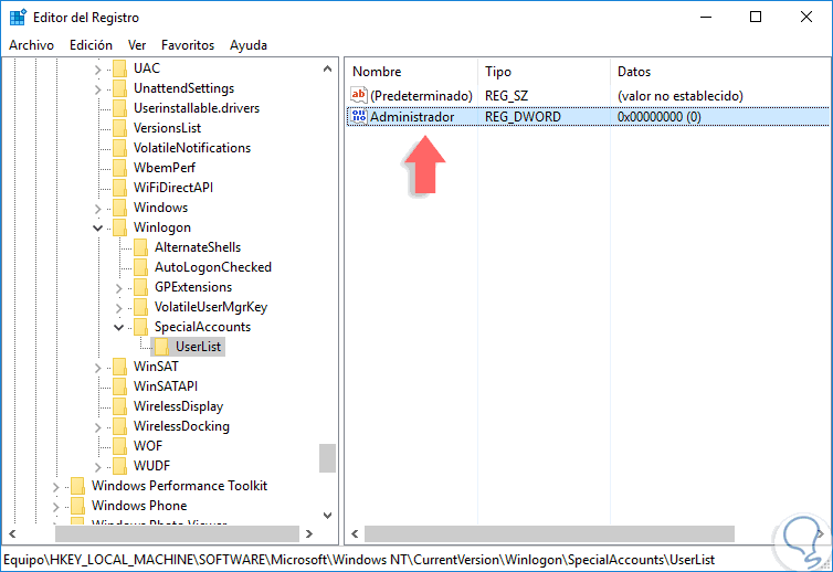 9. Ver usuario administrador en pantalla inicio de sesión Windows 10