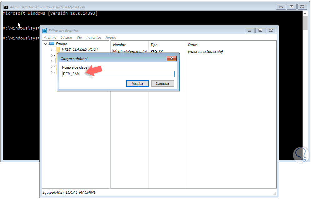 Se desplegará la siguiente ventana donde ingresaremos el termino REM_SAM