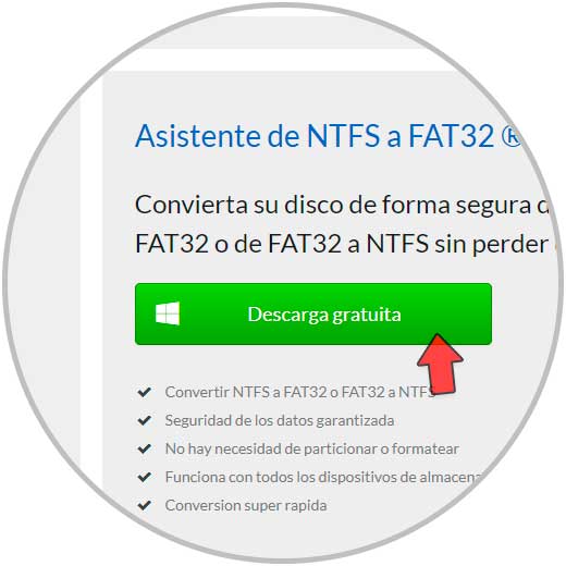 Vamos al siguiente enlace para descargar el programa NTFS to FAT32 con el botón de "Descarga gratuita".