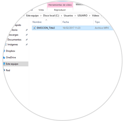 Cuando la conversión del DVD a MP4 sea correcta veremos el video en formato MP4 en la ruta indicada.