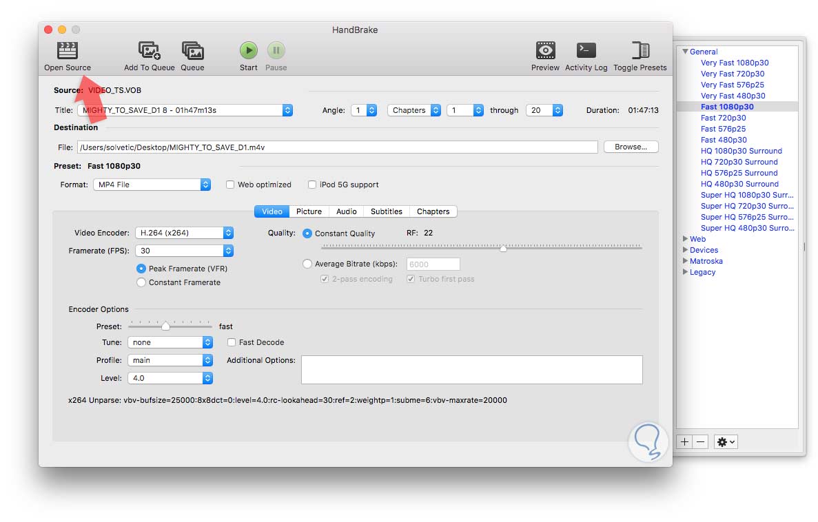 En primer lugar pulsamos en la opción Open Source para obtener los datos del DVD: