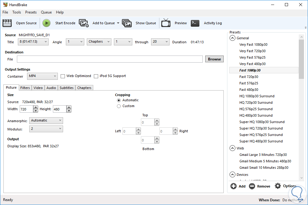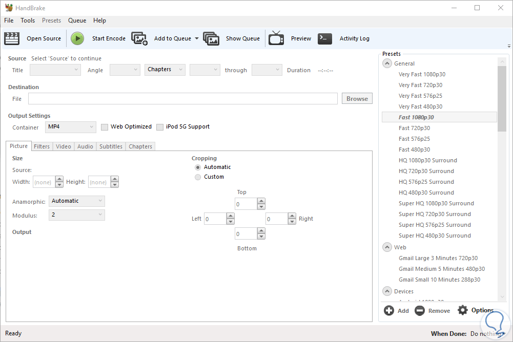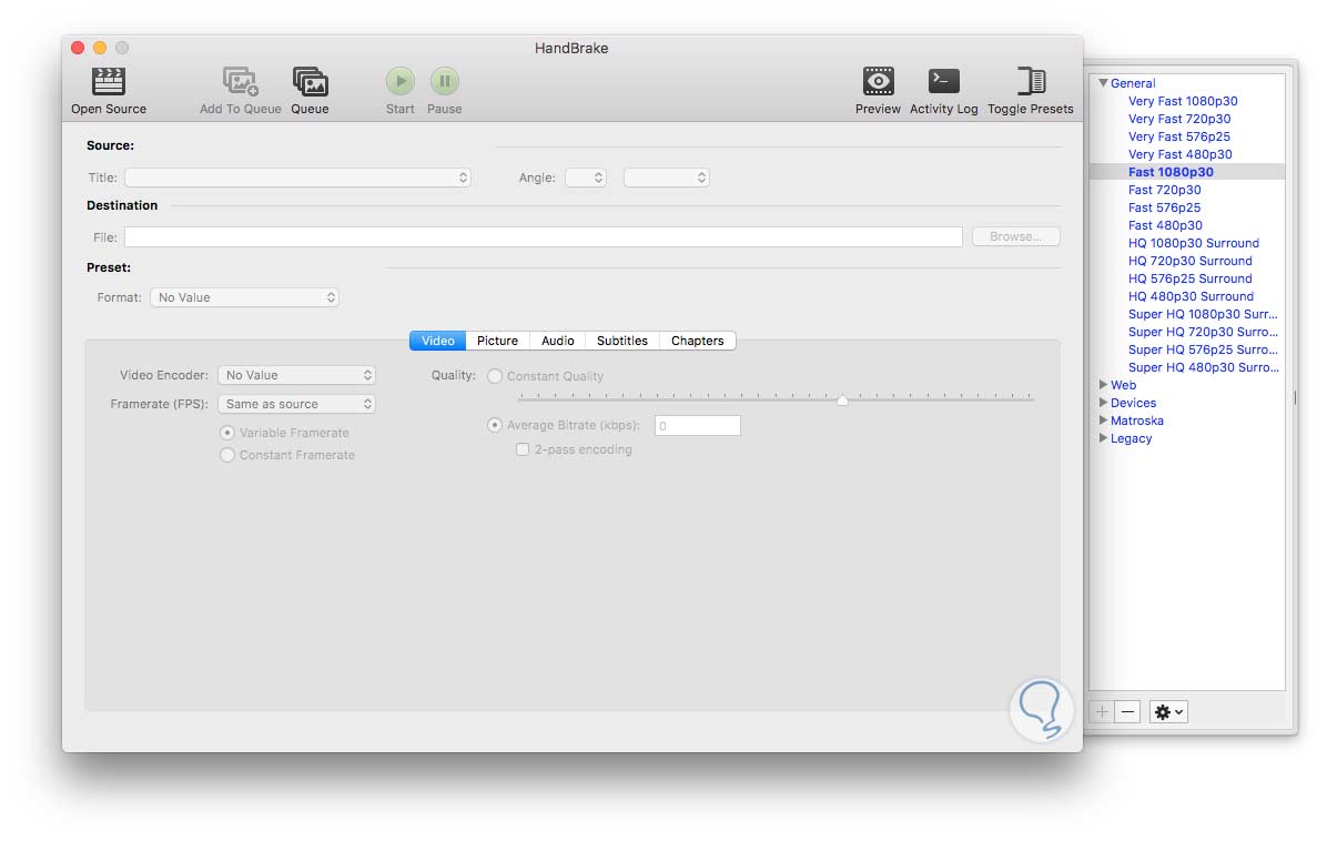 Una vez instalado HandBrake tendremos el siguiente entorno: