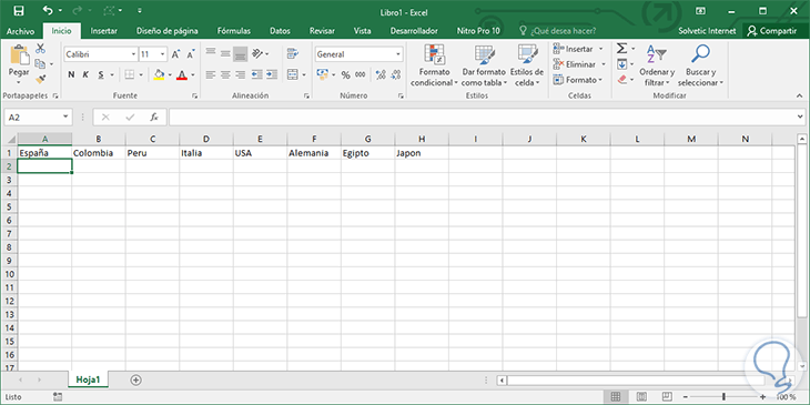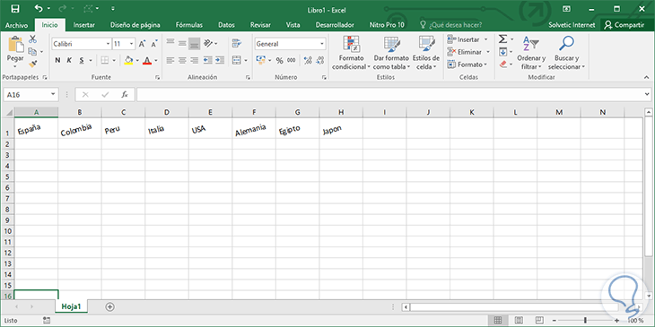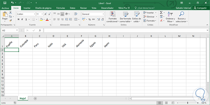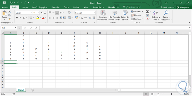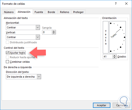 2. Cómo rotar el texto en Excel 2016 usando la opción Formato de celdas
